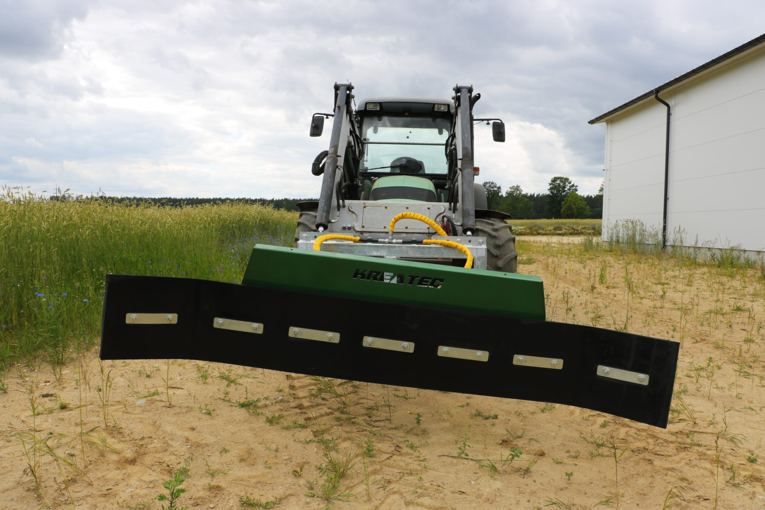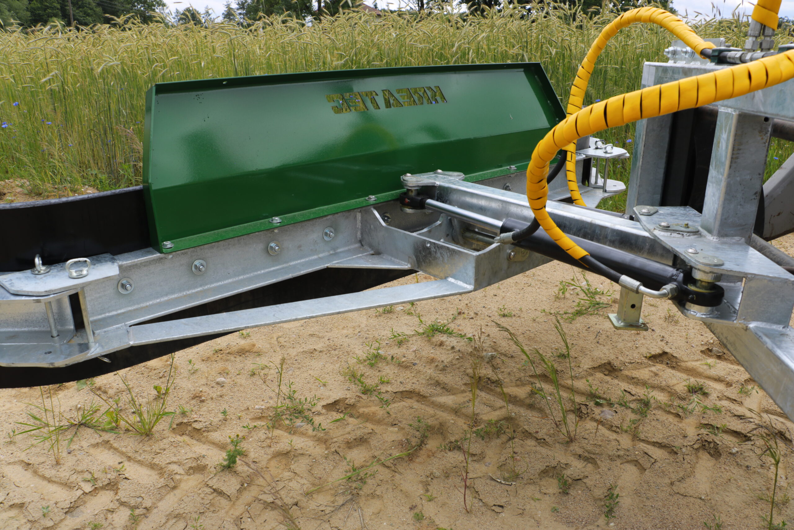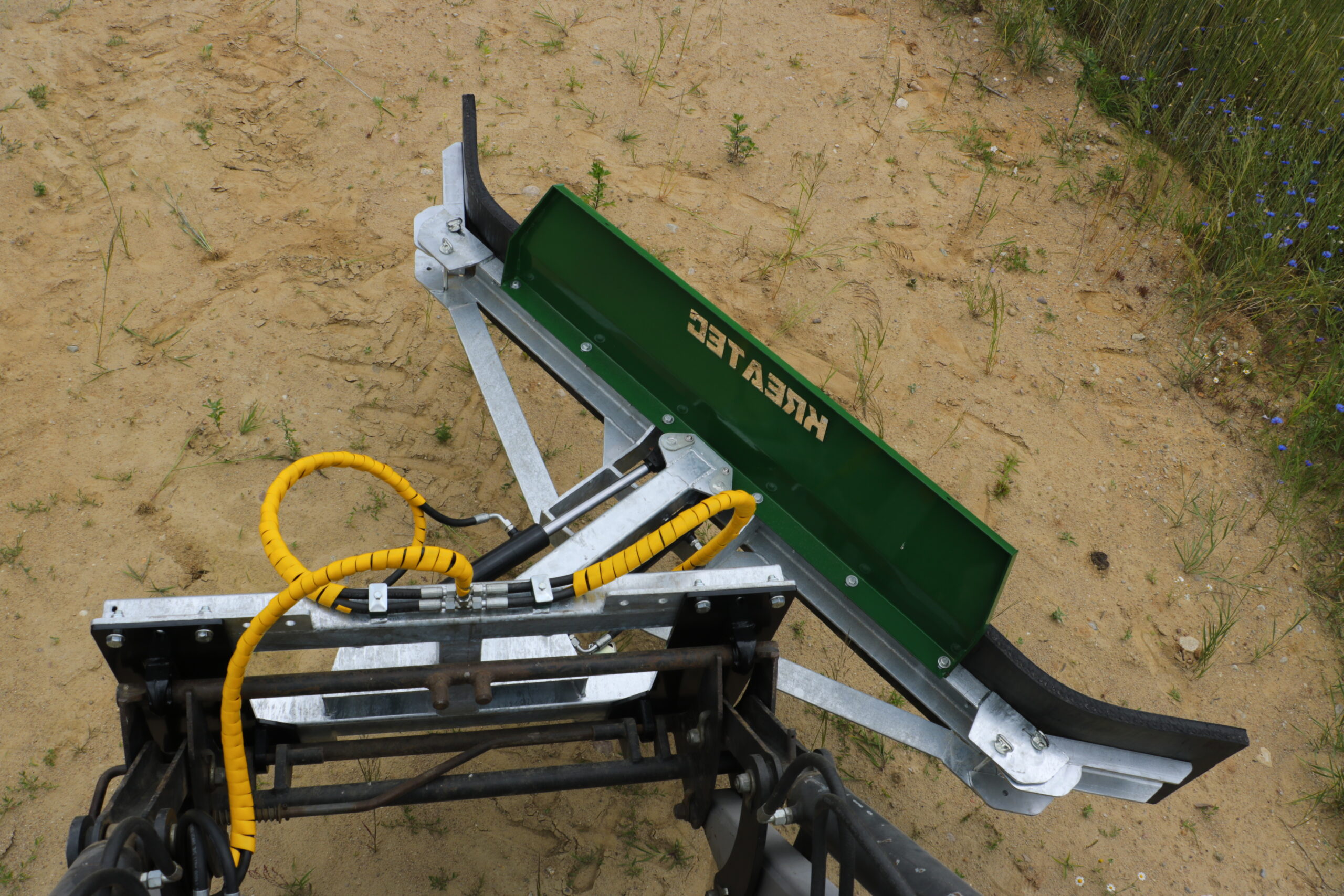 Die Konstruktion basiert auf einem biegefesten H-Profil, das während des Betriebs widerstandsfähig gegen Biegen ist. Die Enden der seitlichen Schaufel sind schwenkbar, was die Funktionalität des Geräts erhöht.